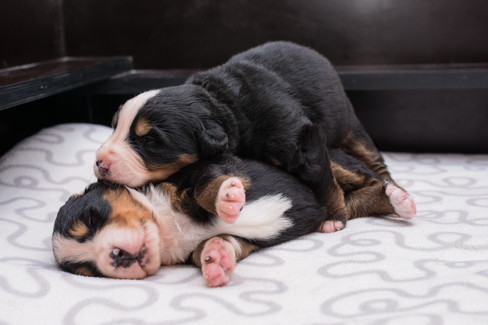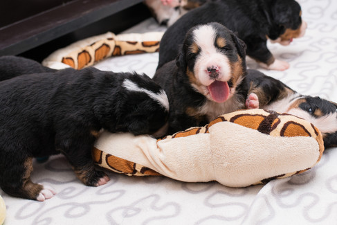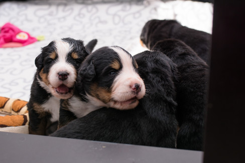 Der #I_Wurf ist schon drei Wochen alt und langsam werden die Zwerge munter. Das Bellen und knurren wird fleißig geübt und auch die Geschwister werden intensiv untersucht, es ist einfach zu lustig, ihnen zuzusehen. Heute gab es das erste Mal frisches Hackfleisch, was (fast) alle gierig verschlungen haben. Rüde 3 hatte keine Lust, aber er ist auch der Dickste von allen und hatte wohl keinen Hunger